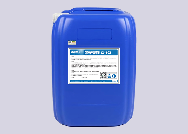 CL-602高效預膜劑加藥濃度一般為400-600mg/L。預膜時間為冷態48-72小時,熱態24-48小時。預膜時水中鈣離子不小于50 mg/L,pH應保持在6-8。